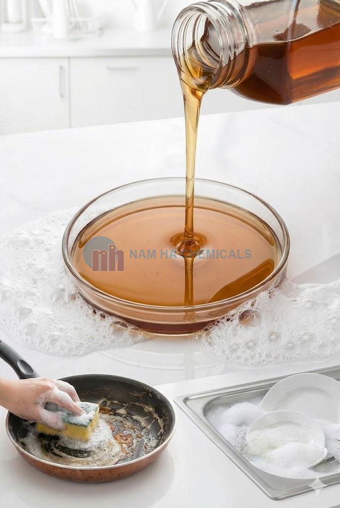 Lưu ý: LAS nguyên chất có tính axit mạnh (pH ~ 1-2), ăn mòn da tay. Tuyệt đối không dùng trực tiếp. Phải trung hòa trước khi sử dụng.