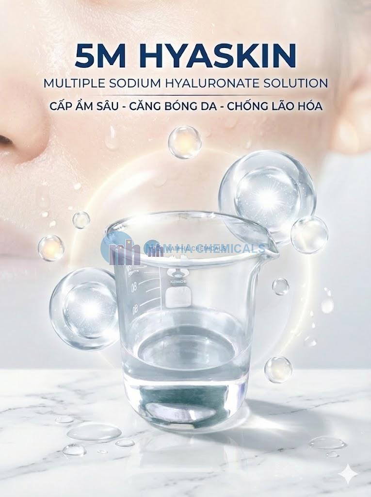 + 5M Hyaskin có thể sử dụng như một thành phần mỹ phẩm trong các sản phẩm chăm sóc da như Toner, serum, kem dưỡng ẩm, mặt nạ…