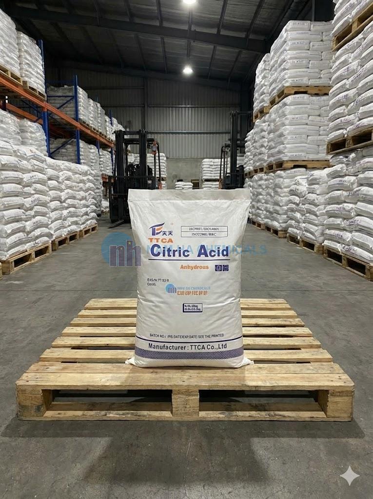 Hóa Chất Nam Hà chuyên nhập khẩu và phân phối Acid Citric Anhydrous (E330) chính hãng từ các nhà máy lớn tại Trung Quốc (Ensign / TTCA / RZBC). Chúng tôi cam kết nguồn hàng chuẩn Food Grade (Thực phẩm), đáp ứng mọi nhu cầu từ chế biến thực phẩm đến tẩy rửa công nghiệp trên toàn quốc.