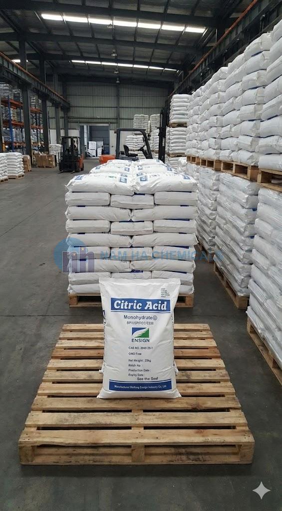 1kg/gói, 25kg/bao.Tổng kho Acid Citric Monohydrate (E330) nhập khẩu Weifang/Ensign. Bột chanh ngậm nước, chuyên dùng tạo vị chua cho nước giải khát, xử lý nước, tẩy rửa. Giá sỉ bao 25kg. Giao hàng toàn quốc.