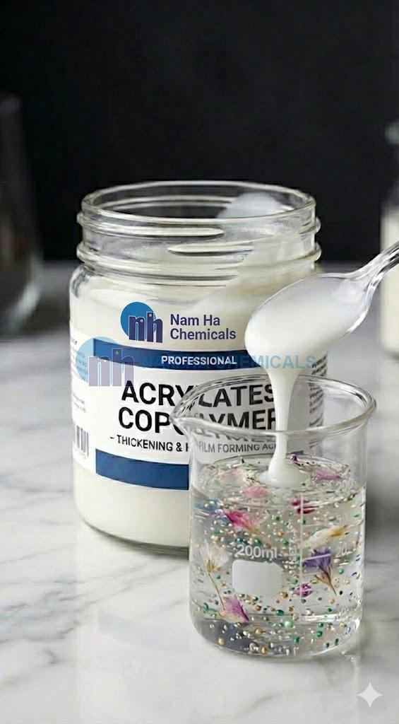 Trong ngành hóa mỹ phẩm, Acrylates Copolymer không chỉ là một chất tạo đặc thông thường. Nó là một polymer đa chức năng, đóng vai trò cốt lõi trong việc kiến tạo cấu trúc, ổn định hệ nhũ tương và nâng tầm thẩm mỹ sản phẩm. Tại Công ty TNHH Nam Hà, chúng tôi cung cấp dòng Acrylates Copolymer nhập khẩu với độ tinh khiết cao, mang lại hiệu quả vượt trội cho mọi công thức điều chế.