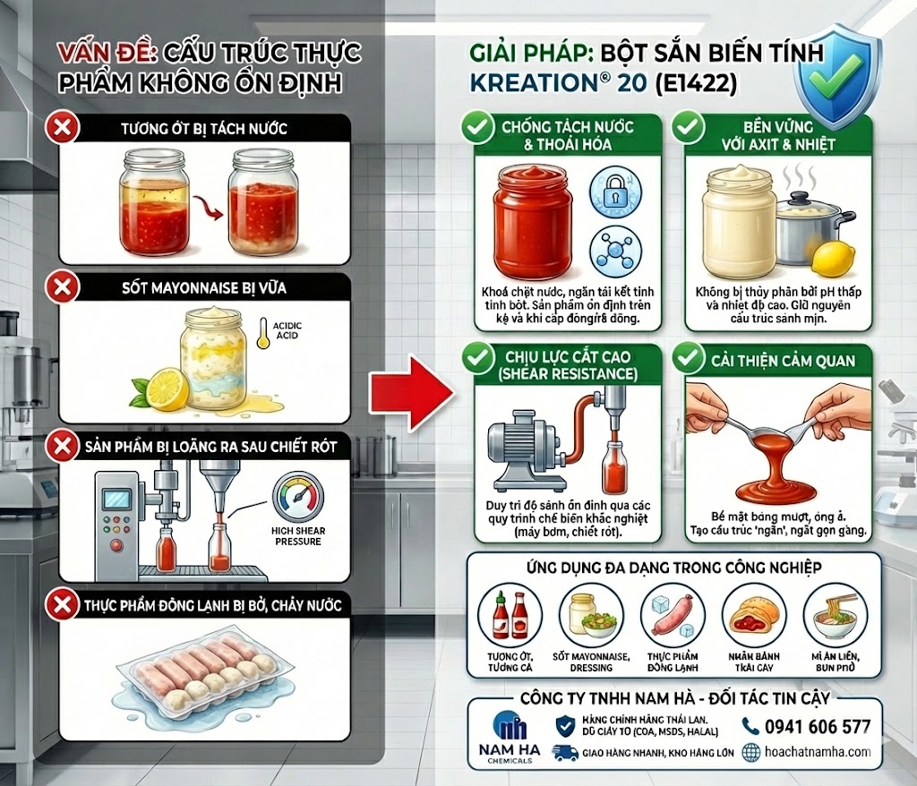 Nếu câu trả lời là CÓ, thì Bột sắn biến tính KREATION® 20 chính là giải pháp kỹ thuật tối ưu mà Công ty TNHH Nam Hà mang đến cho bạn.