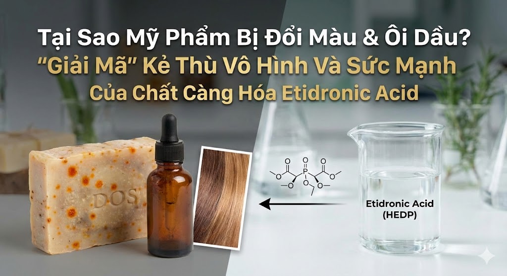 Tại Sao Mỹ Phẩm Bị Đổi Màu & Ôi Dầu? "Giải Mã" Kẻ Thù Vô Hình Và Sức Mạnh Của Chất Càng Hóa Etidronic Acid
