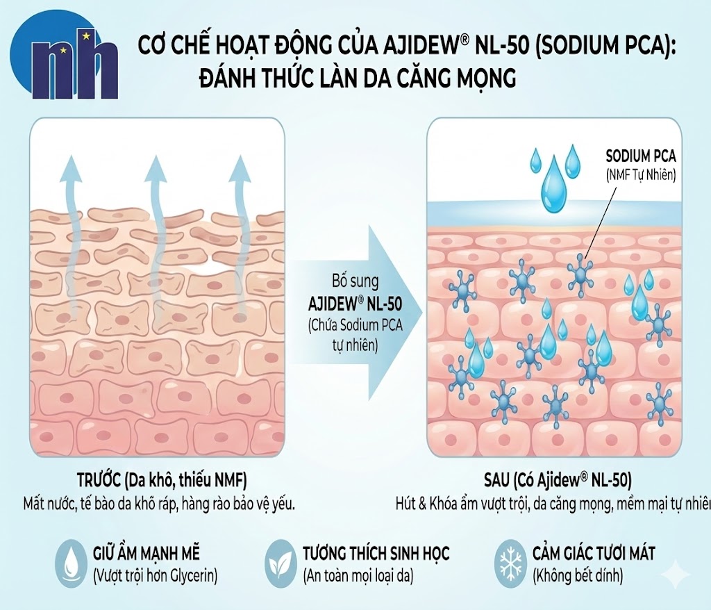 Sodium PCA (Ajidew NL-50): Giải Mã Bí Mật Của Yếu Tố Giữ Ẩm Tự Nhiên (NMF) Và Cuộc Cách Mạng "Cấp Nước Sinh Học" Trong Kỷ Nguyên Mỹ Phẩm Bền Vững
