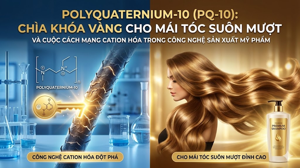 Polyquaternium-10 (PQ-10): Chìa Khóa Vàng Cho Mái Tóc Suôn Mượt Và Cuộc Cách Mạng Cation Hóa Trong Công Nghệ Sản Xuất Mỹ Phẩm