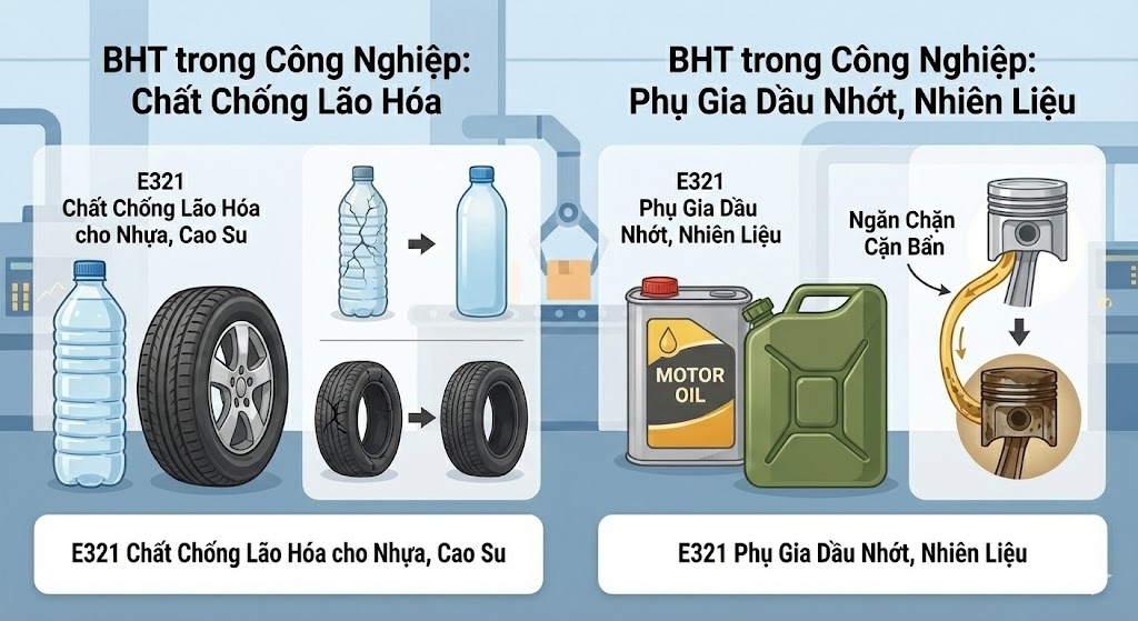 Chỉ cần một lượng rất nhỏ, BHT có thể kéo dài thời gian bảo quản của sản phẩm lên đáng kể, giúp bạn yên tâm hơn khi phân phối hàng hóa đi xa.