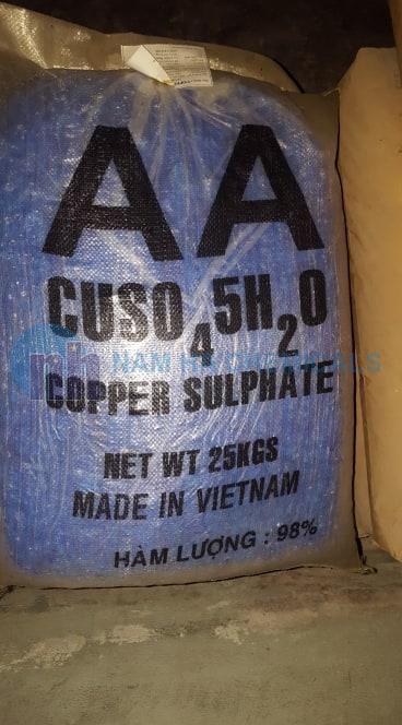 Copper Sulfate (CuSO4) hay Sulphate Đồng có dạng tinh thể nhỏ màu xanh dương, tan trong nước. CuSO4 tồn tại dưới một số dạng ngậm nước khác nhau, trong đó Công ty TNHH Nam Hà cung cấp đến cho quý khách loại CuSO4.5H2O (dạng pentahydrate phổ biết nhất). CuSO4.5H2O được sử dụng trong nuôi trồng thủy sản dùng để phòng, trị một số bệnh do kí sinh trùng, hạn chế sự phát triển của một số loại tảo trong ao nuôi, khử trùng đáy ao,…Ngoài ra Đồng Sulphate còn được ứng dụng trong nhiều lĩnh vực khác nhau như dệt, nhuộm, lọc kim loại, sơn tàu thuyền, xi mạ, ứng dụng trong sản xuất thuốc nông nghiệp (thuốc diệt nấm, thuốc trừ sâu, thuốc diệt cỏ),…