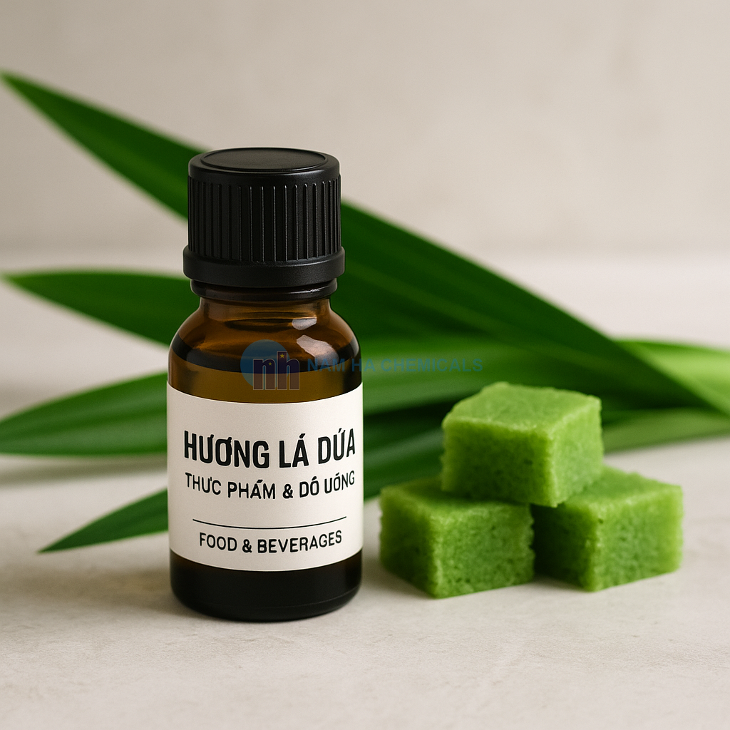 Hương Lá Dứa (Pandan Flavoring) mang hương vị thơm dịu, ngọt thanh và tự nhiên, gợi nhớ đến mùi thơm quen thuộc của lá dứa tươi – một loại nguyên liệu truyền thống trong ẩm thực châu Á. Đây là hương liệu được ứng dụng rộng rãi nhờ khả năng tạo cảm giác thơm ngon, thanh mát và gần gũi, phù hợp cho cả bánh kẹo truyền thống lẫn hiện đại.