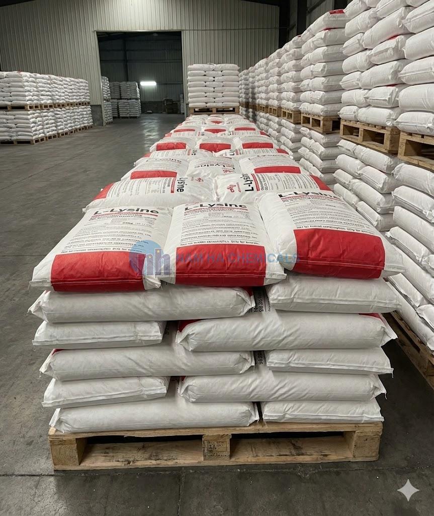 Hóa Chất Nam Hà chuyên nhập khẩu và phân phối L-Lysine HCL 98.5% (Feed Grade) từ các thương hiệu hàng đầu thế giới như CJ, Meihua, Eppen, Fufeng (Trung Quốc). Sản phẩm dạng hạt/bột tinh khiết, hàm lượng Lysine hữu dụng cao, là giải pháp kinh tế nhất cho các nhà máy thức ăn chăn nuôi và trang trại quy mô lớn trên toàn quốc.