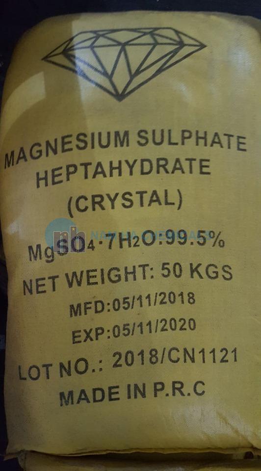 Magnesium Sulfate Heptahydrate hay Magie Sulfat Heptahydrate (MgSO4.7H2O) là một muối vô cơ có dạng tinh thể màu trắng. MgSO4.7H2O được dùng trong nuôi trồng thủy sản phổ biến với công dụng chính là bổ sung magie cho ao nuôi, do khả năng hòa tan nhanh trong nước nên được bổ sung nhanh sự thiếu hụt Mg cho thủy sản trong mọi giai đoạn phát triển. Ngoài ra MgSO4.7H2O còn được ứng dụng trong nông nghiệp để cải tiến cây trồng, trong MgSO4.7H2O có thành phần Mg là một trong những thành phần cấu tạo của diệp lục tố nên rất cần thiết cho quá trình quang hợp của cây, giúp cho cây trồng xanh tươi, khỏe, phát triển và quang hợp tốt hơn.