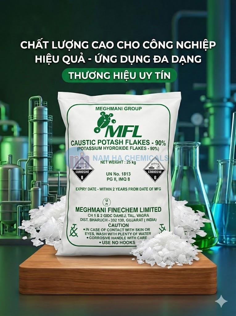 Hóa Chất Nam Hà chuyên nhập khẩu và phân phối Potassium Hydroxide (KOH) chính hãng, nổi bật nhất là dòng UNID (Hàn Quốc) - Tiêu chuẩn vàng của thế giới và dòng Trung Quốc giá tốt. Sản phẩm dạng vảy trắng, hàm lượng chuẩn 90% - 95%, đáp ứng khắt khe nhu cầu của các KCN tại Cần Thơ và Miền Nam.