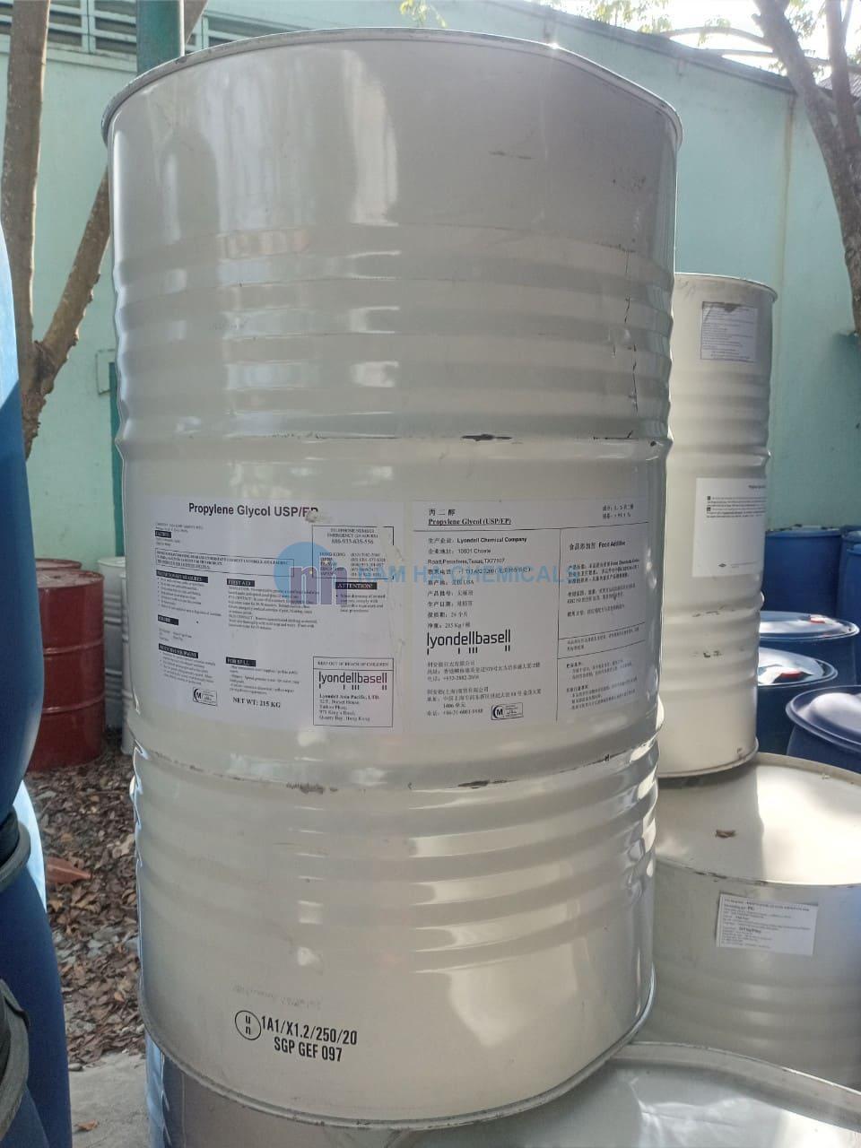 Đóng gói: 500g/chai, 30kg/can, 215kg/phuy.- Propylene Glycol tên thường gọi là PG. Propylene Glycol có dạng chất lỏng trong suốt không màu, không mùi, có vị hơi ngọt, hơi nhớt, là dung môi có khả năng hoà tan nhiều loại vô cơ, hữu cơ (axit béo, các loại rượu, ester) và tan hoàn toàn trong nước.