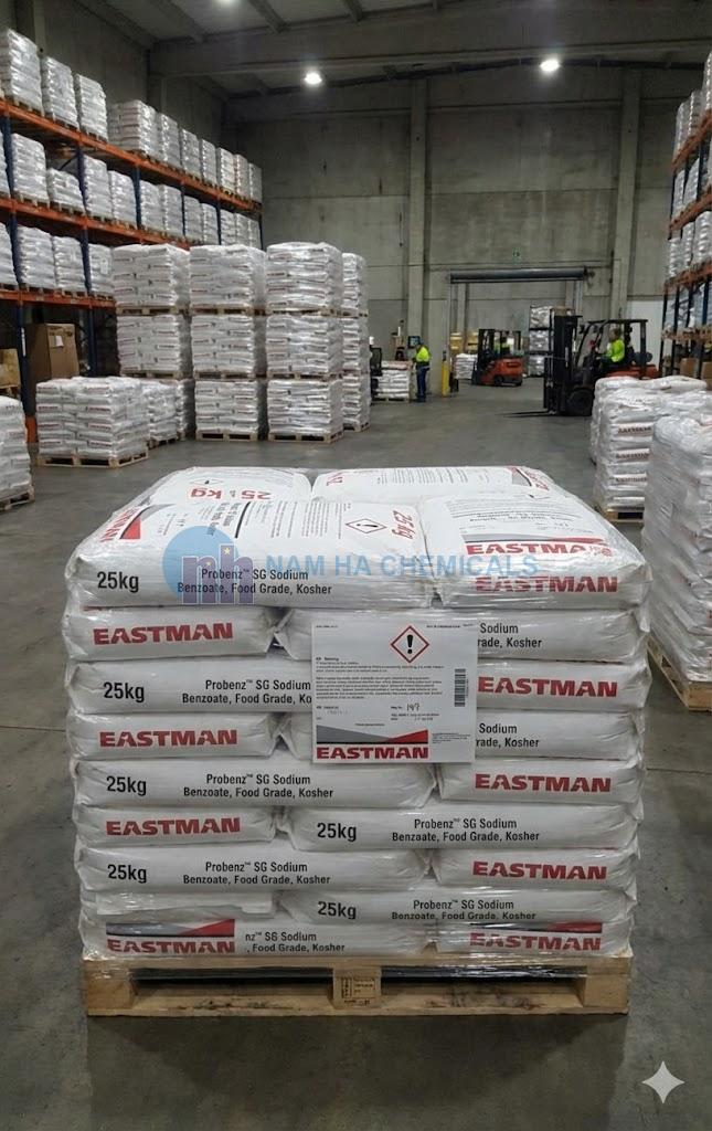 Hóa Chất Nam Hà chuyên nhập khẩu và phân phối Sodium Benzoate chính hãng từ các thương hiệu hàng đầu như EASTMAN (Estonia), Kalama (Mỹ/Hà Lan), Wuhan (Trung Quốc). Sản phẩm dạng hạt sùng hoặc bột trắng, không mùi, đáp ứng tiêu chuẩn an toàn thực phẩm của Bộ Y Tế.